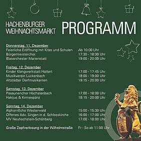 Vom 11. bis 14. Dezember lädt die Löwenstadt wieder zum traditionellen Weihnachtsmarkt in der historischen Innenstadt ein. Freuen Sie sich auf vier Tage voller Weihnachtsstimmung, Nostalgie und gemütlichem Beisammensein – mit liebevoll dekorierten Ständen, kulinarischen Genüssen und einem abwechslungsreichen Rahmenprogramm für Groß und Klein. Der Eintritt ist frei, das Parken kostenlos. Der Markt ist donnerstags bis samstags von 11 – 20 Uhr und sonntags bis 18 Uhr geöffnet. Wir freuen uns auf Ihren Besuch!