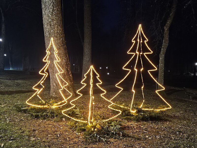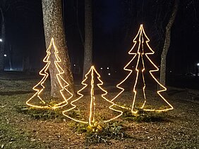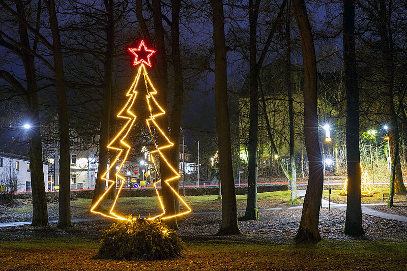 Durch die Fördermittel war es möglich, die großen Laubbäume inklusive der Linde am Alten Markt, in der Friedrichstraße sowie am Neumarkt mit neuer, stimmungsvoller Beleuchtung auszustatten. Zudem wurden individuelle Weihnachtsbäume aus Metall, verziert mit hochwertigen Lichterketten, angeschafft und im angrenzenden Burggarten aufgestellt. Die kunstvollen Metallbäume wurden von Metallbau Hölzemann angefertigt und anschließend vom städtischen Bauhof mit Lichterketten ausgestattet. Der größte dieser Bäume misst beeindruckende sieben Meter und gilt bereits jetzt als besonderes Highlight.