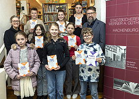 Der neue Vorlesekönig im nördlichen Westerwaldkreis heißt Benedikt Reeh. Der Sechstklässler vom Evangelischen Gymnasium Bad Marienberg setzte sich in Hachenburg in einem spannenden und mitreißenden Lesewettstreit gegen sieben weitere Schulsiegerinnen und Schulsieger durch. Der Vorlesewettbewerb des Deutschen Buchhandels, der bereits 1959 ins Leben gerufen wurde, begeistert jedes Jahr rund 600.000 Kinder und zählt damit zu den größten und traditionsreichsten Schülerwettbewerben Deutschlands. Den Regionalentscheid in Hachenburg organisierte die Stadtbücherei Werner A. Güth bereits zum sechzehnten Mal mit viel Engagement.