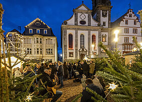 Ein kleiner Winterwald mit Tannenbäumen, Lichterketten und weichem Hackschnitzelboden schuf eine warme, behagliche Atmosphäre. Ergänzt wurde das Erlebnis durch kurze Geschichten über Hachenburger Persönlichkeiten, die im Winterwald entdeckt werden konnten. Gezielte Akzente setzten die beiden Wintertreffs am 15. und 29. Januar, die den Alten Markt jeweils am späten Nachmittag und frühen Abend zu einem lebendigen, zugleich entspannten Treffpunkt machten. Ausliegende Lammfelle und knisternde Feuerstellen sorgten für zusätzliche Gemütlichkeit, besonders jedoch die ruhigen Musikklänge wurden von den Gästen sehr geschätzt und unterstrichen den entschleunigten Charakter des Projekts.